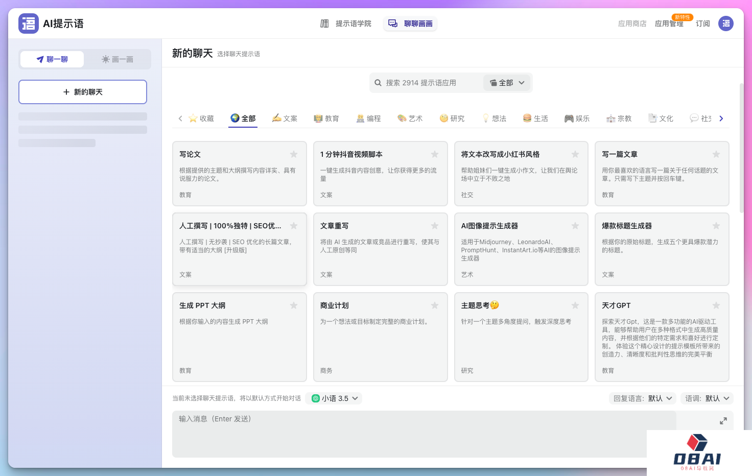 - 内置2900+ 免费提示语应用;- 链接常见AI大模型;- 支持上传文档或者输入网址链接作为信息源;- 支持多种终端,方便高效管理提示词;- 内置提示词学院,可以作为免费的提示词教程。其中, 包括基础篇、场景篇、高级篇、技巧篇、实践策略等章节。