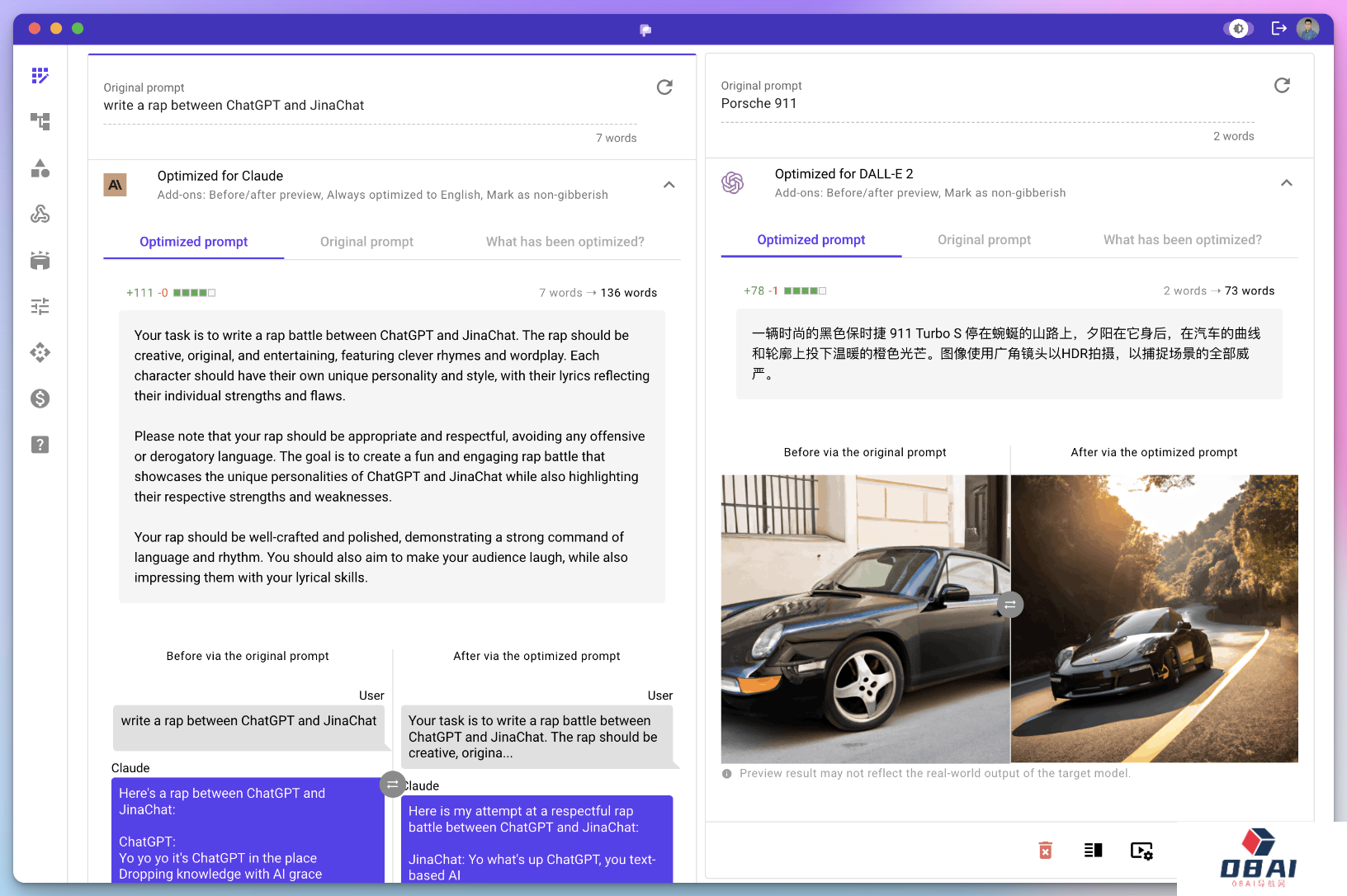 - 支持多目标优化,支持逐步优化结果,支持多个模型的输出;- 支持多种语言的提示词;- 10 秒快速出结果;- 支持部署;- 支持 API, 支持快速处理和集成;