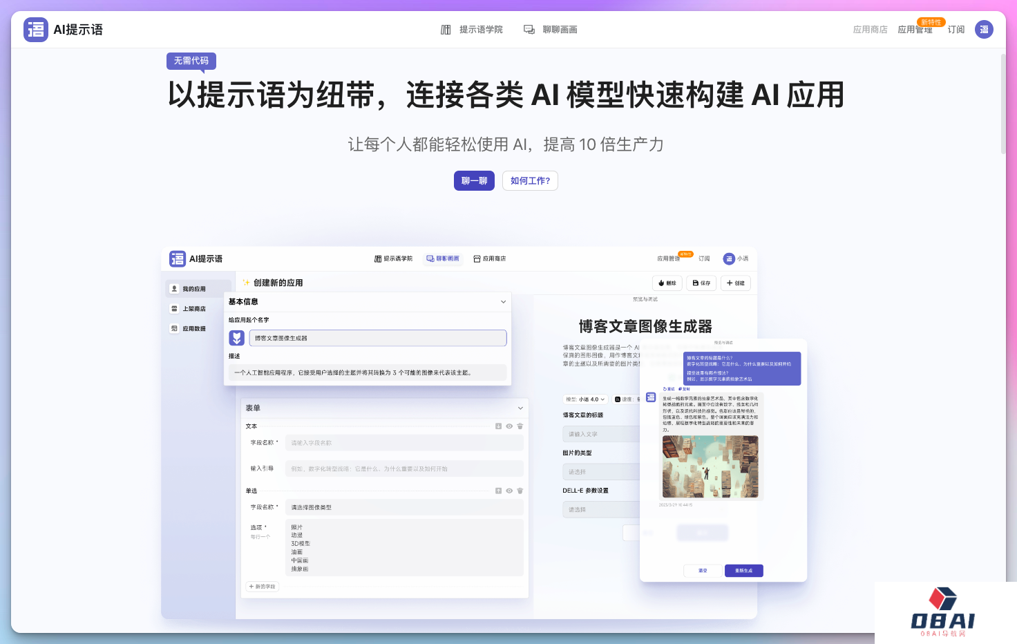 简介: 一个以提示语为纽带, 连接各类 AI 模型,快速构建 AI 应用。