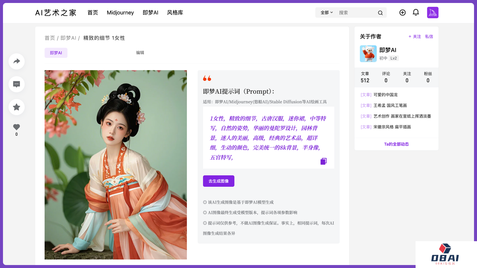 简介:AI艺术之家是一个提供AI绘画提示词和灵感的网站,用户可以免费下载并商用AI生成的图片素材。
