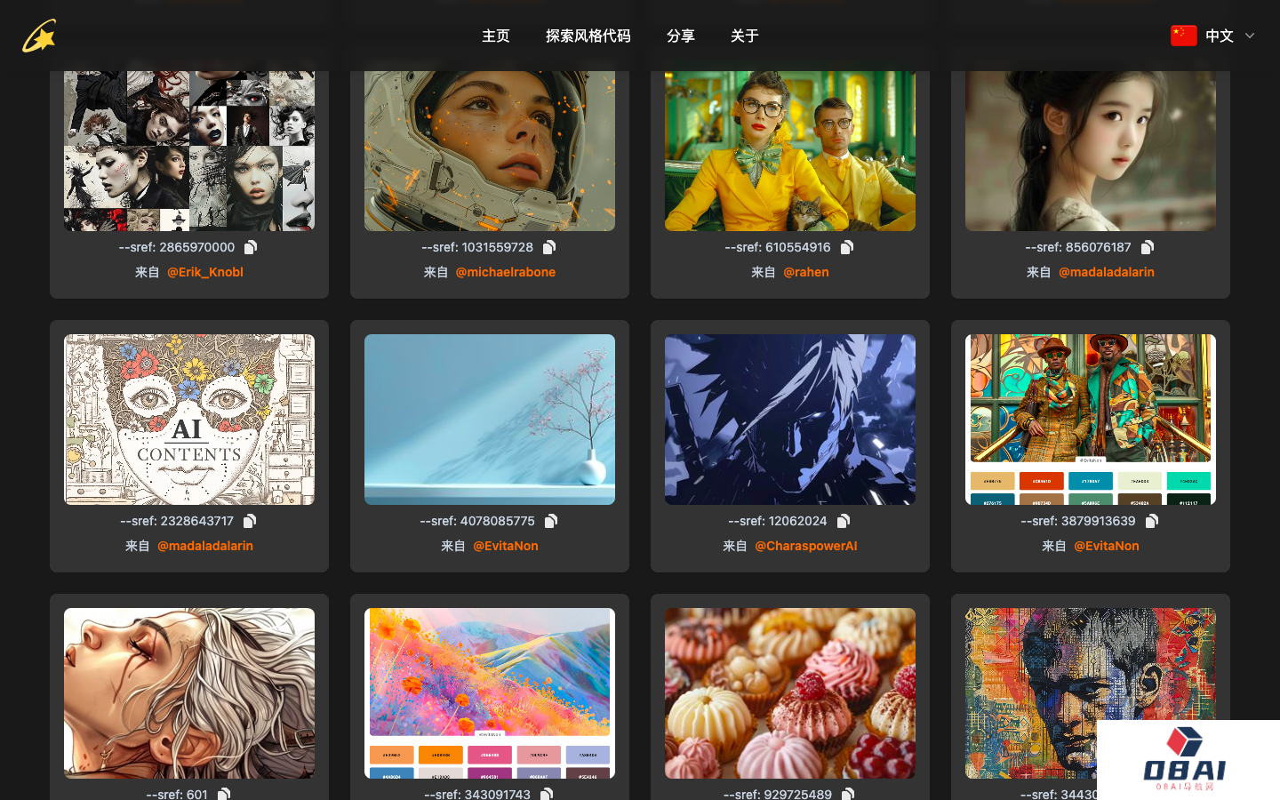 风格代码多样,覆盖广泛的视觉风格;