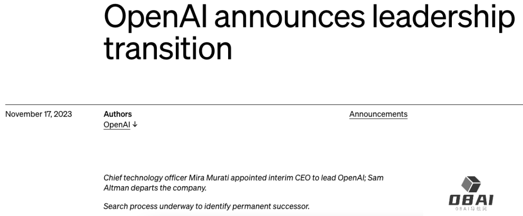 对于驱逐公司的领导人,OpenAI董事会在当地时间11月17日发布的官方声明写道: