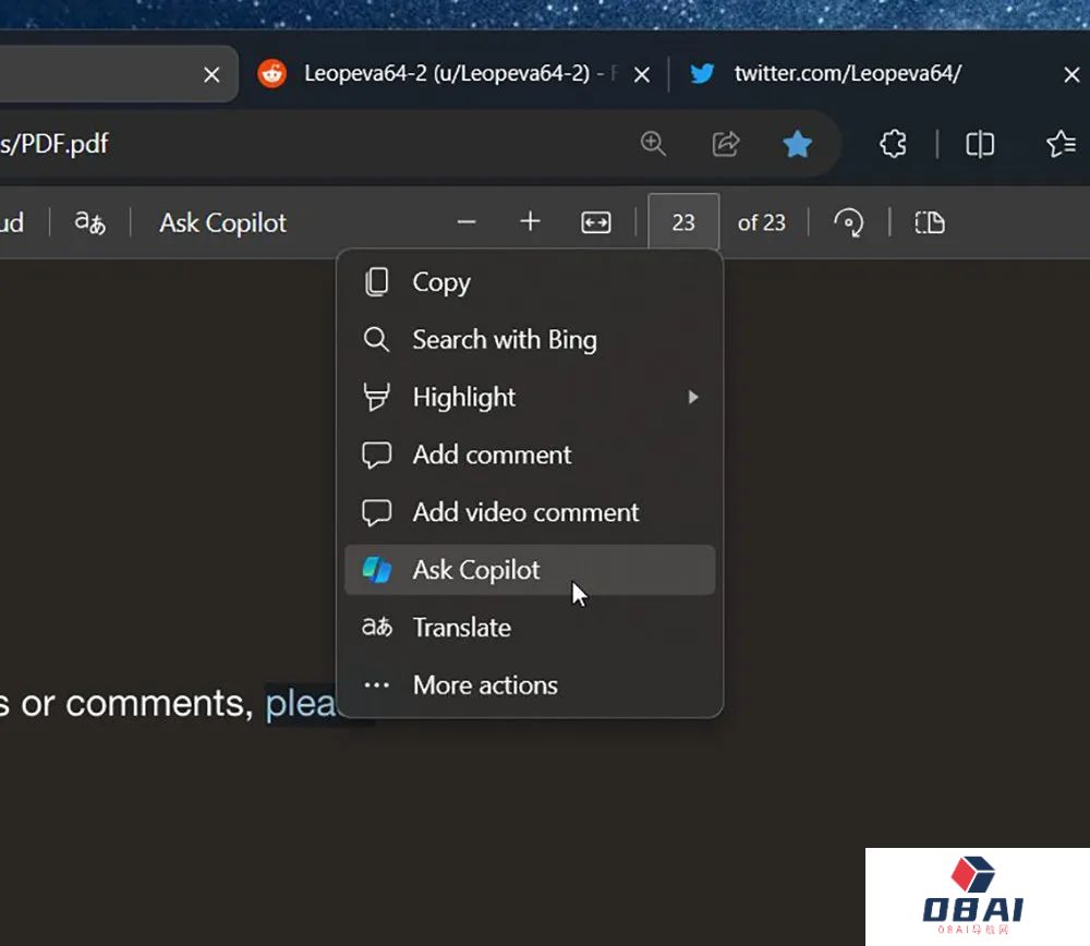 据外媒消息,11月12日,有网友发现,在刚刚更新的Windows 11微软Copilot助理设在Edge浏览器上的快捷启动按钮,已经与PDF文档的阅读器功能深度集成。这意味着用户现在直接在Edge浏览器上使用Copilot针对PDF文档的内容进行摘要与总结。