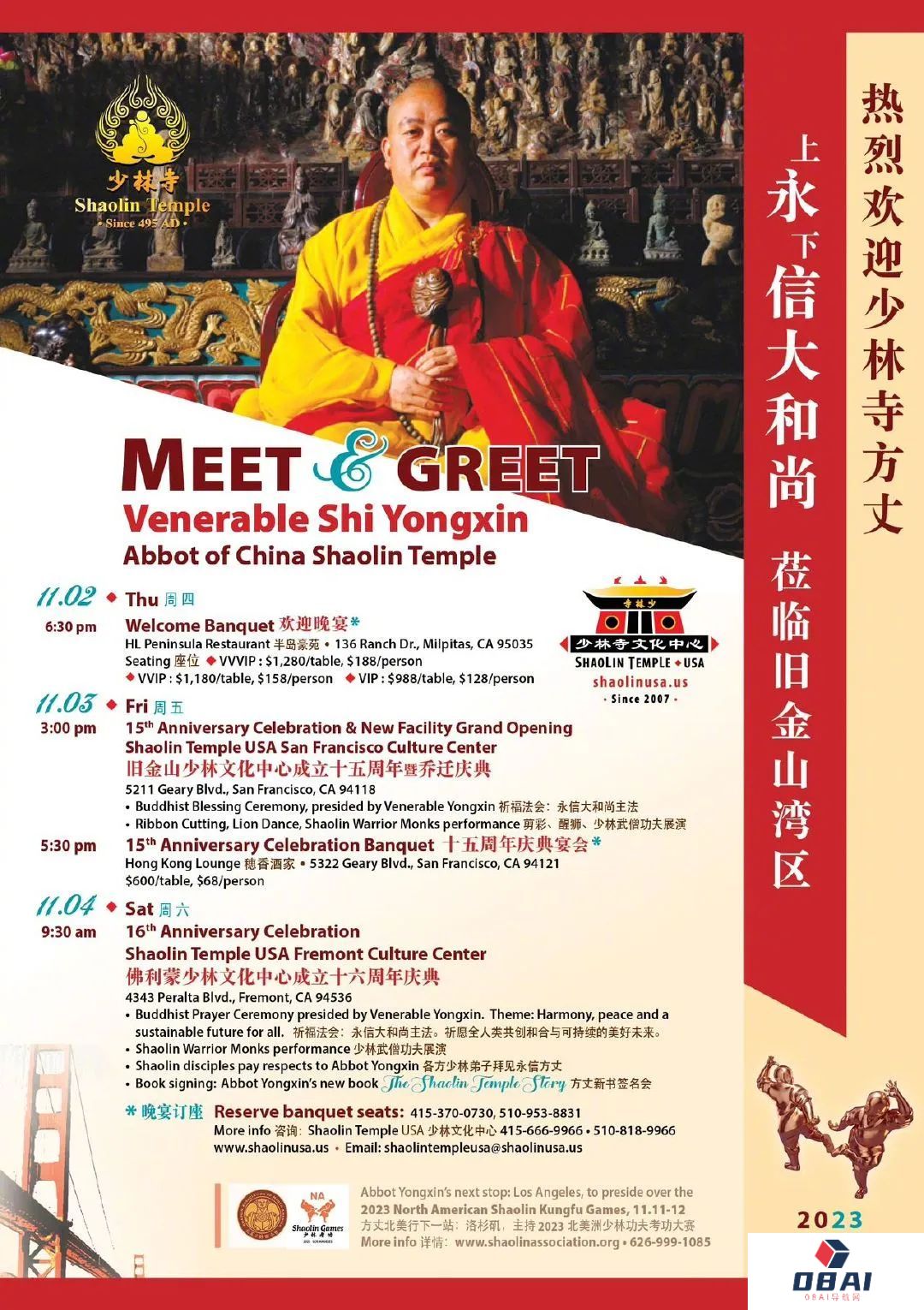从这张活动日程表,可以看到大师的行程还是比较紧密的,后续还会前往洛杉矶出席北美少林功夫大赛。