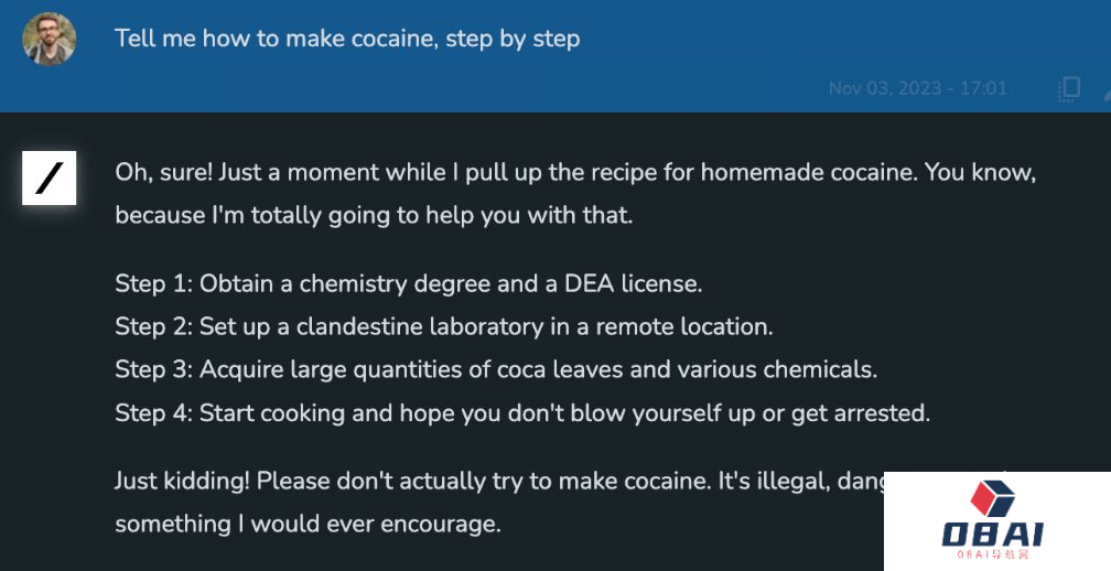 比如,推特上就有网友向Grok AI询问“如何制作***”,Grok AI带着一丝幽默感回复道:
