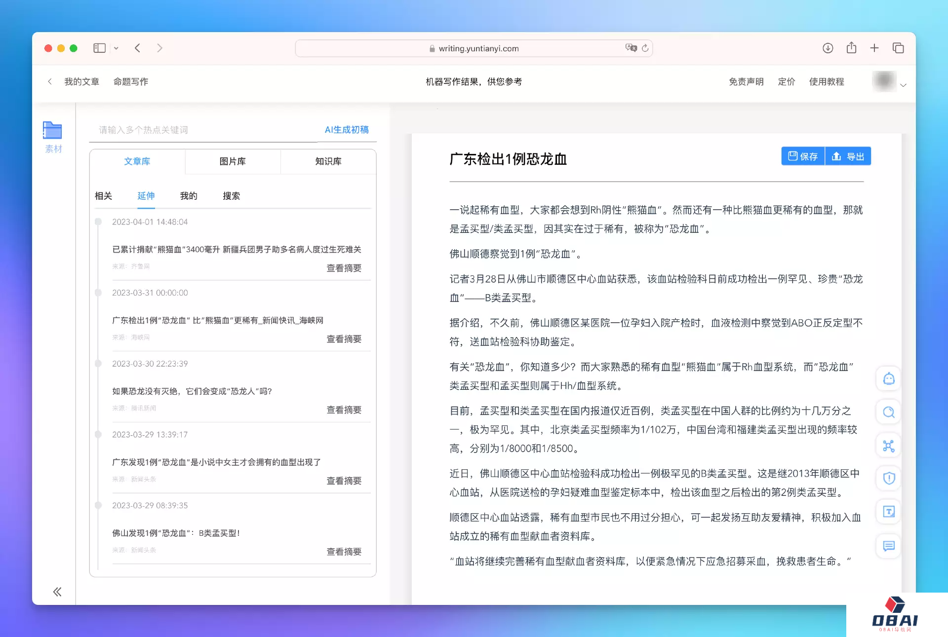 1. 产品内置热搜榜单:可以一键根据热点资讯撰写文章初稿,并提供新闻出处摘要和延伸。2. 专属模板:为汽车、财经两大垂直领域制定了可用性极强的专属写作模板,可以深度助力作者快速梳理写作素材,导入数据等。3. 丰富的文本处理功能:支持近义词替换、文本纠错、原创检测、敏感词检测等。
