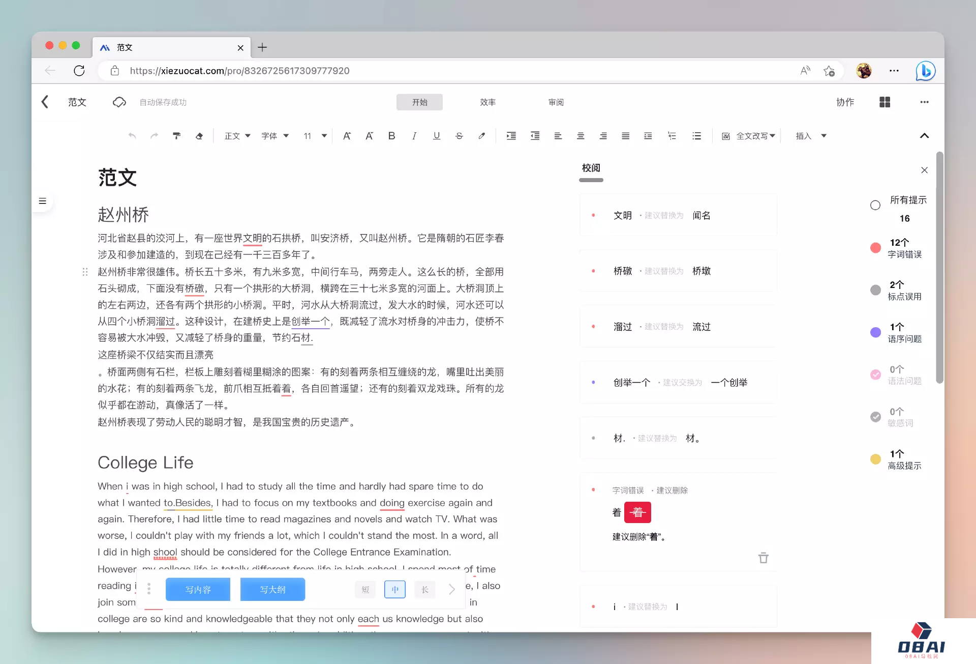 秘塔写作猫致力于做新一代交互式中英文写作辅助平台,产品集智能文本纠错、改写润色、自动续写、智能配图为一体。