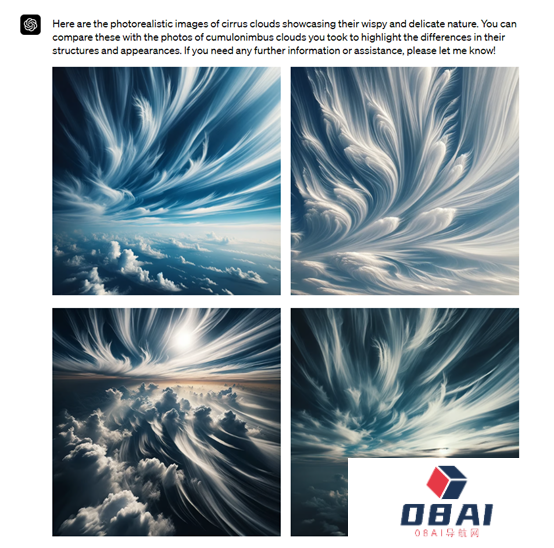 例如,我正在为科学课做一份关于卷云的报告,需要一些逼真的图像来展示它们的纤细形态。同时需要与浮肿积雨云的照片进行比较。