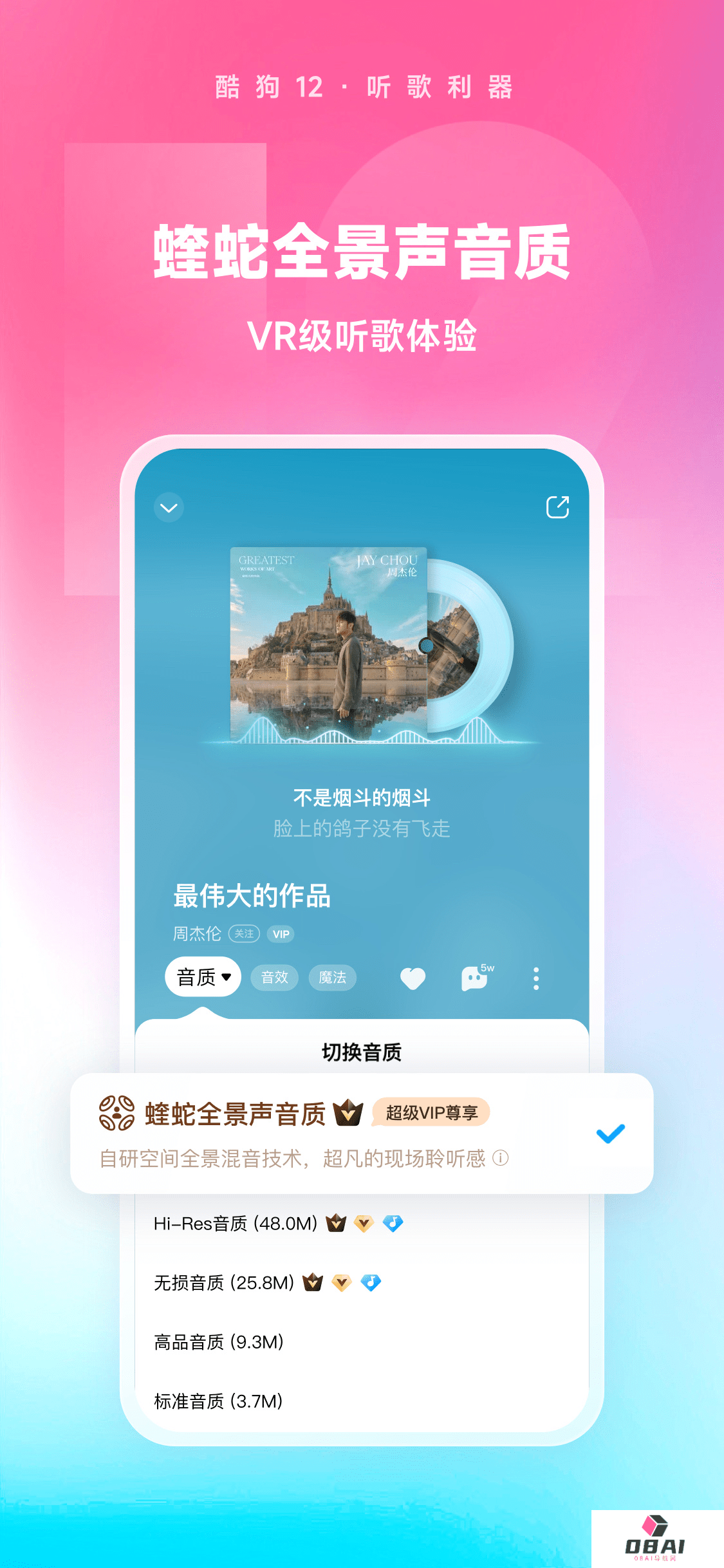 ③酷狗音乐还自研了“蝰蛇全景声”,通过AI为喜欢的歌曲生成5.1环绕声,为用户带来更多的细微动态和丰富层次的聆听体验。