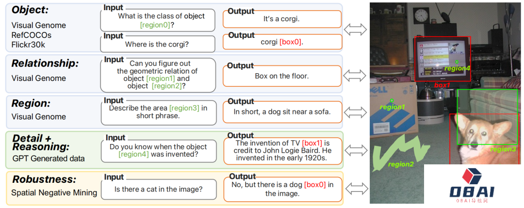 这个数据集包含1.1M个样本,涵盖了个体对象、对象之间的关系、特定区域的描述以及基于区域的复杂推理等四个主要类别。