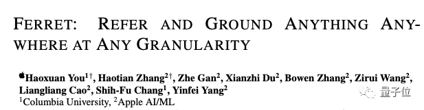 最后值得一提的是,Ferret大模型由苹果AI/ML和哥伦比亚大学研究团队共同带来,而且是全华人阵容。