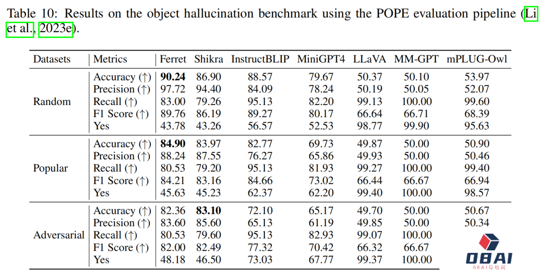 Ferret模型在LLaVA-Bench和Ferret-Bench上进行评估,在所有任务中都表现出色,特别是在需要指代和视觉grounding的三个新任务上,Ferret的表现很出色。