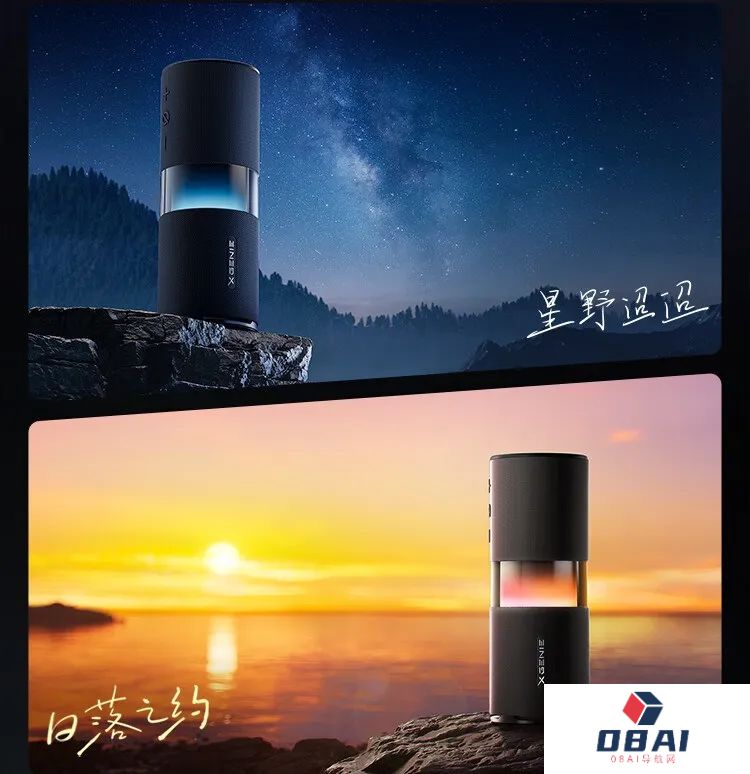 未来精灵Sound随声筒提供两种配色,一黑一白,采用三段式撞色搭配,中间段为半透明的LED氛围灯。搭载360°环绕式氛围灯效,支持1600万色全彩LED,颜值还是很顶的。