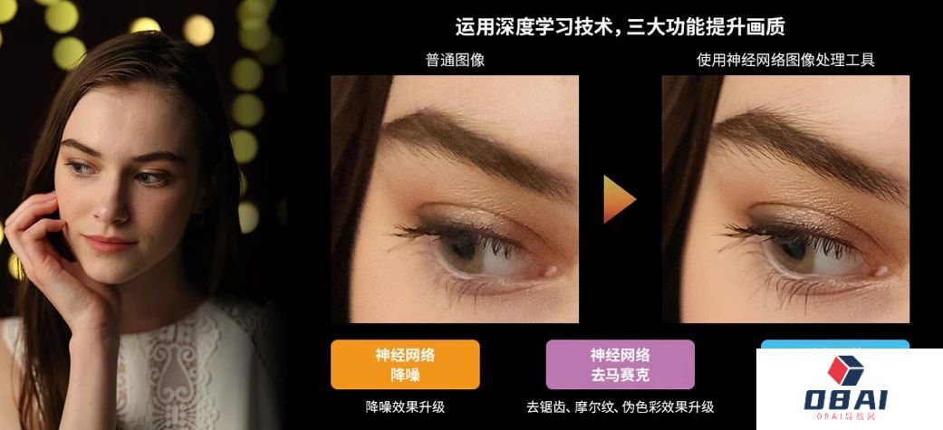 根据官方介绍,神经网络图像处理工具主要提供消除马赛克、画面降噪、以及镜头画质优化三大功能: