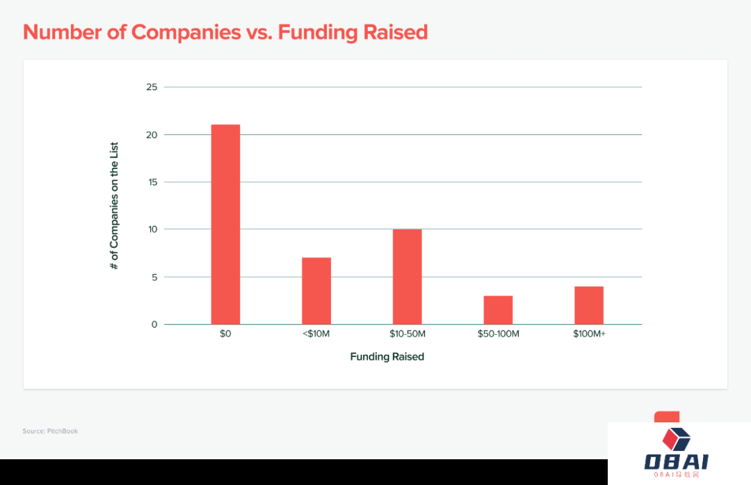 在名单上的50家公司中,只有5家是已存在的大型科技公司的产品或收购:Bard(Google)、Poe(Quora)、QuillBot(Course Hero)、Pixlr(123RF)和Clipchamp(Microsoft)。