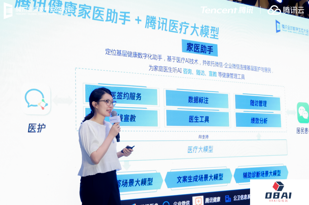 在助力基层服务能力提升方面,腾讯健康还发布了全新的家庭医生助手。腾讯健康利用微信、企业微信打通医患的沟通渠道,以及医疗大模型的助力,将为医生提供更加智能的签约、咨询、随访、宣教能力。基于医疗大模型的能力,家庭医生助手能够化身“基层AI百事通”,为居民提供精细化的健康管理。