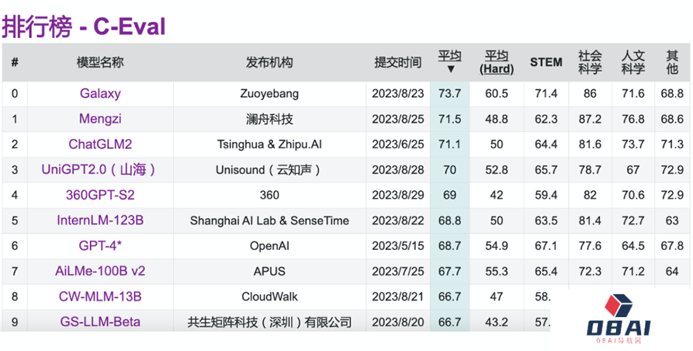 作业帮旗下教育领域银河大模型亮相C-Eval榜单