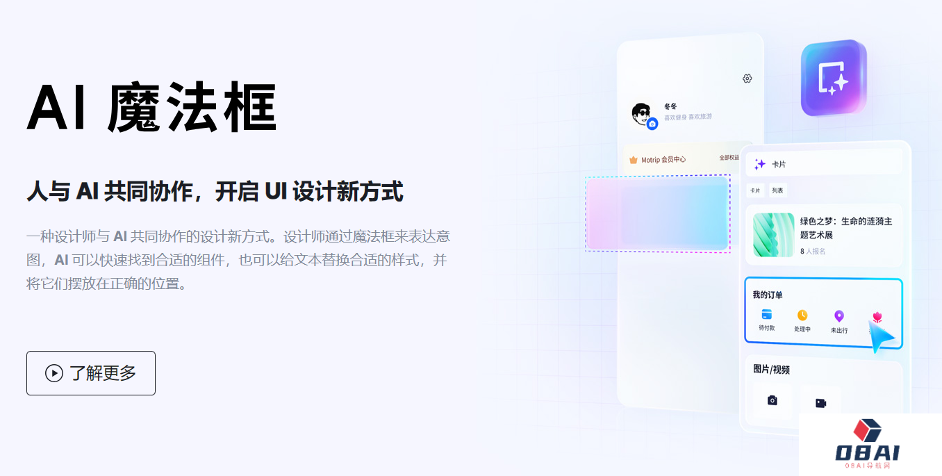 通过使用“AI魔法框”工具,设计师可以借助AI快速找到合适的组件,也可以给文本替换合适的样式,并将它们摆放在正确的位置。
