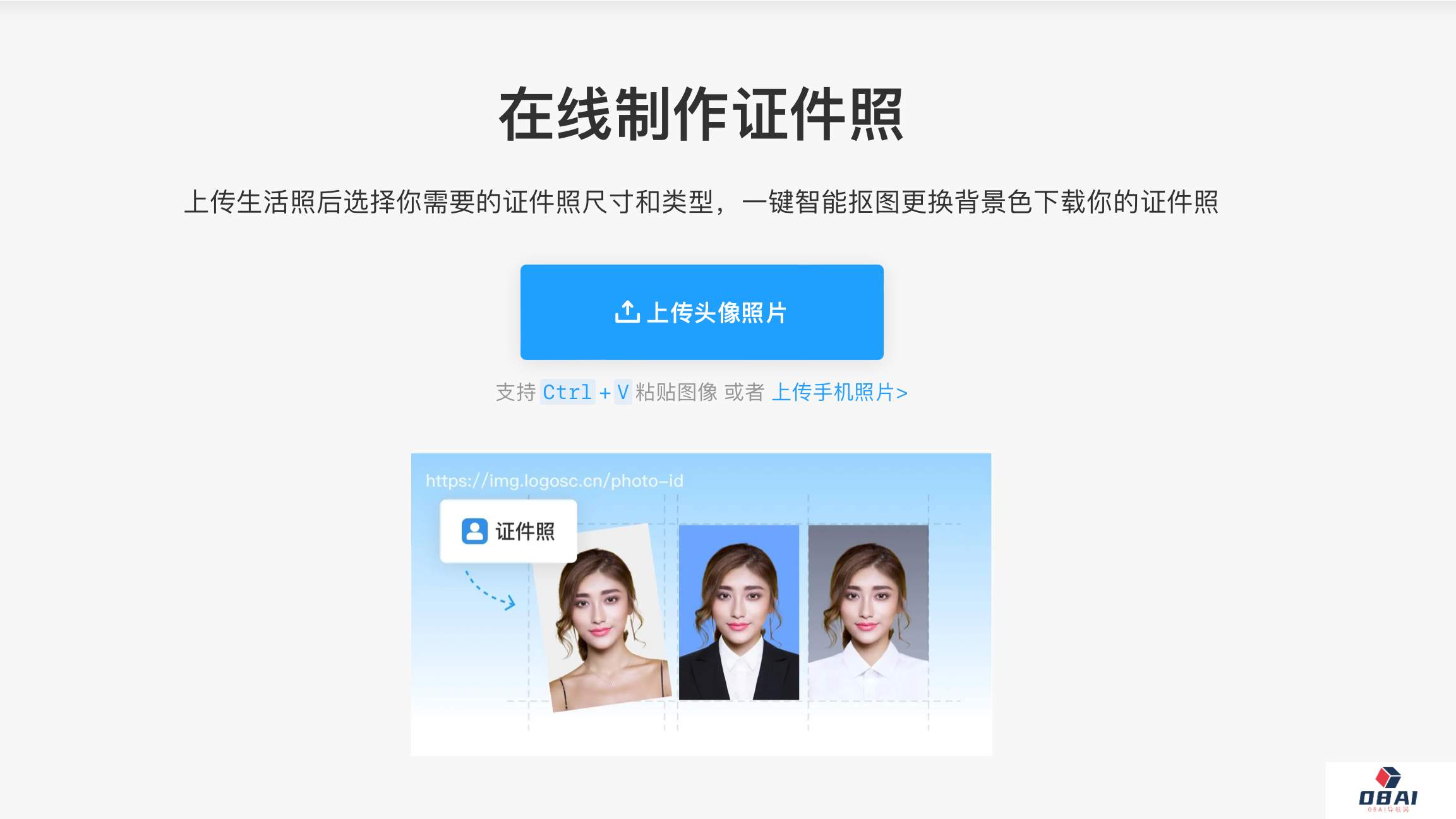 进入「在线制作证件照」界面,拖拽照片到网站页面或者点击「上传头像照片」,也可以使用 Ctrl+V 将图片复制进来,还可以扫描二维码上传手机里的照片。