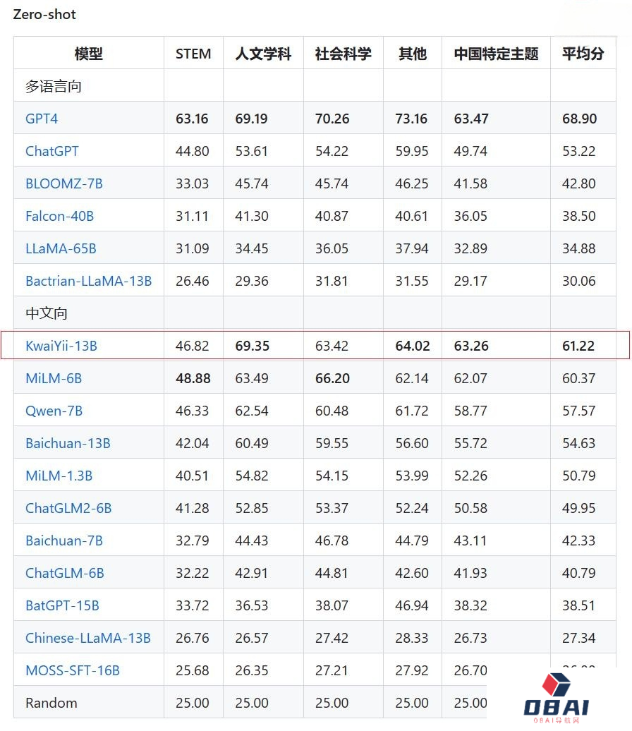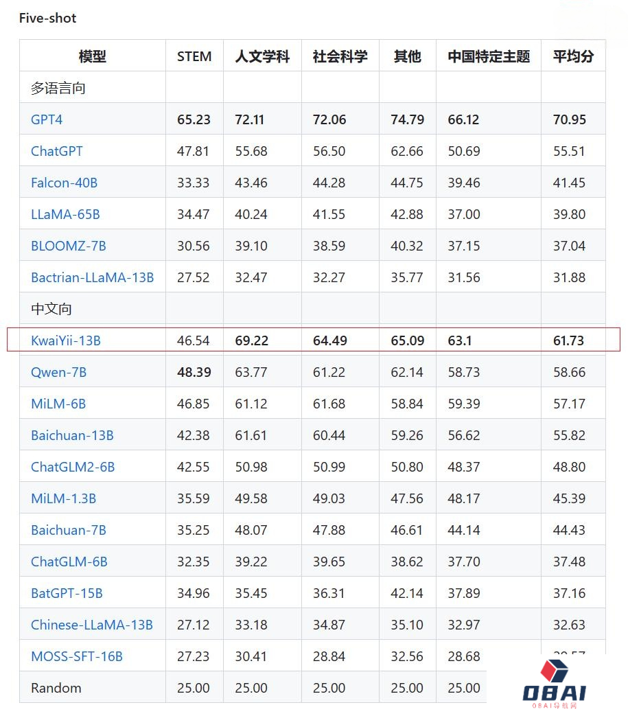 快手首个大语言模型“快意”亮相CMMLU排行榜,中文测评排名第一