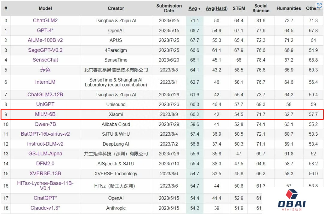 小米大模型在C-Eval取得了总榜排行第10、同参数量排名第1;CMMLU榜单中文方向大模型排名第1的不俗成绩,既展示了小米在人工智能领域的积极探索,也符合小米一贯「不服跑个分」的个性。