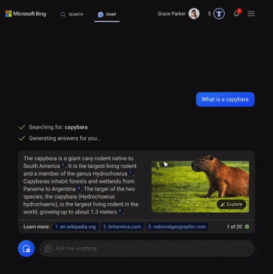 此外,微软还宣布Bing Chat现已推出深色模式以及企业版应用,下一个搜索体验为组织提供 AI 支持的聊天,包括可验证的答案和引用以及商业数据保护。