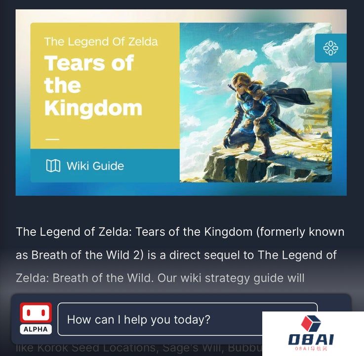 AI奇点网从IGN处获悉,这家知名的游戏评测媒体网站即将推出自家的AI聊天机器人IGN Guides Chatbot。官方目前正在基于《塞尔达传说:王国之泪》这款游戏提供游戏攻略方面的指南服务内测。用户可以提供聊天窗口询问任何关于这款游戏所包含的知识,可以支持自然语言对话与多轮对话,为用户的特定问题提供答案。