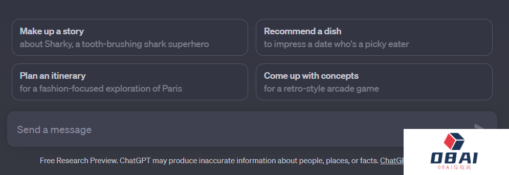 ①新手示例:第一次打开新的聊天界面时,你将会看到入门引导帮助,会提供许多实际应用的案例供你查看和体验