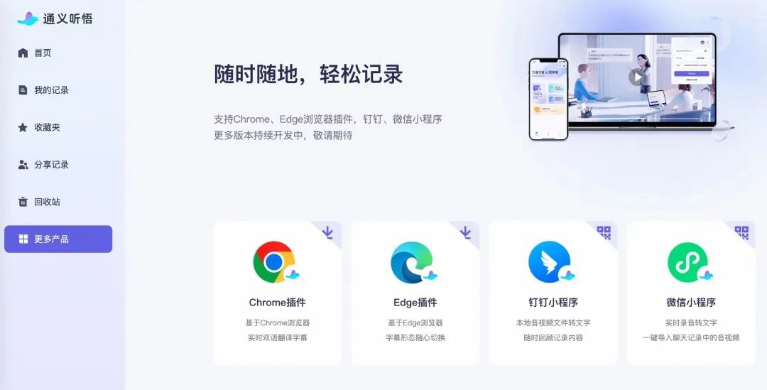 此外,官方表示,通义听悟还增加了浏览器插件和移动端的支持。用户可以在谷歌Chrome浏览器上安装插件,在开会、上网课、看直播、看视频时,能够调用插件进行全程录制,并实时生成双语字幕,从而“帮助用户更轻松地浏览视频内容”。