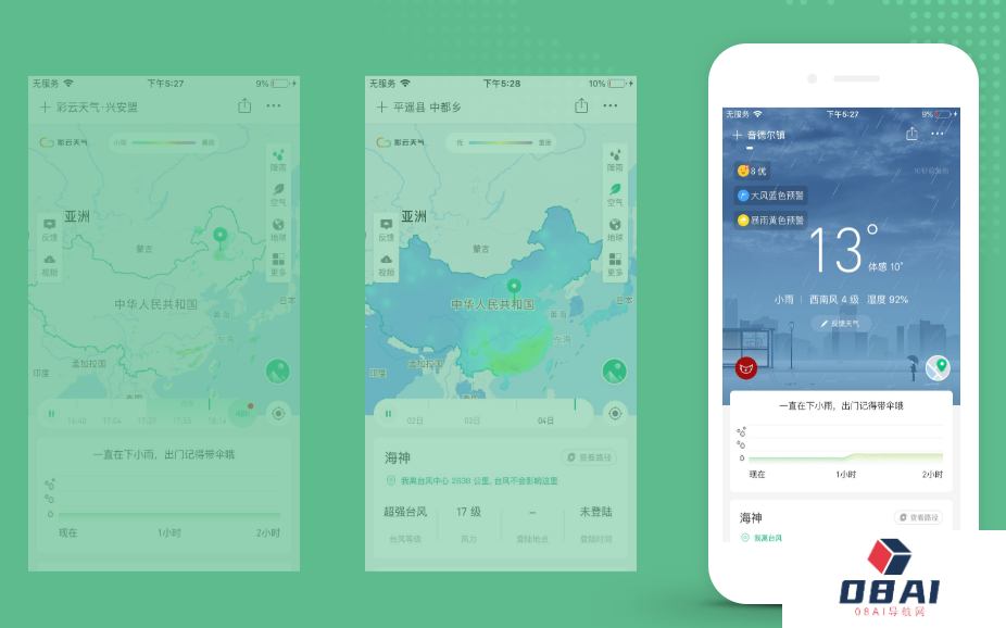 人人都希望出门有个好心情,对于经常出差的商务客,目的地的天气基本几乎等于生意成败与否的一半。借助降水动态图,全国各地的降水状况一目了然,即便是台风带来的降水状况也尽在掌握。