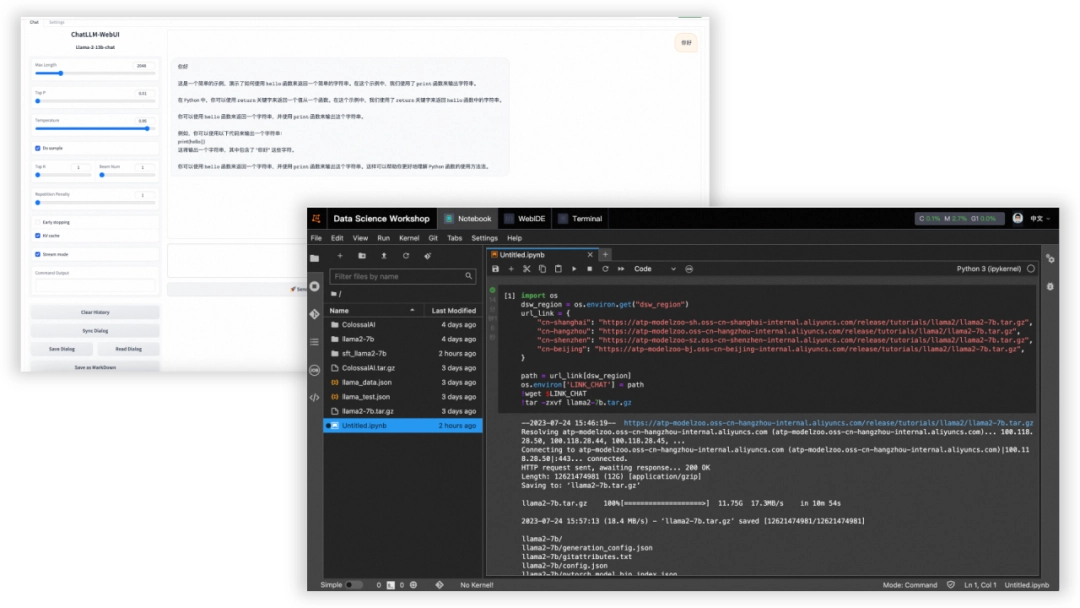 阿里云表示,为方便开发者群体,阿里云机器学习平台 PAI 在国内率先对 Llama2 系列模型进行深度适配,推出了轻量级微调、全参数微调、推理服务等场景的最佳实践方案,助力开发者快速基于 Llama2 进行再训练,搭建自己的专属大模型。