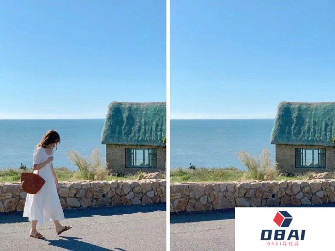 AI奇点网注意到,不少人在旅途中难免遇到游人过多和背景凌乱的场面,而“AI移除”功能轻松解决了这个问题。“AI移除”不仅能移除路人,还能移除栏杆、电线杆等遮挡风景的物体,并自动填充背景,使得美景与人物更加突出。