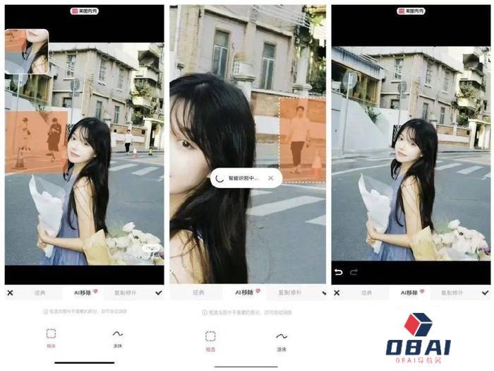 “AI移除”功能刚一上线就受到了旅游群体、饭圈粉丝及设计人员的欢迎,不管是移除海报水印还是消除文字,或者是去除照片中的路人和杂物,都变得轻松无压力,大大提升了图片产出效率。
