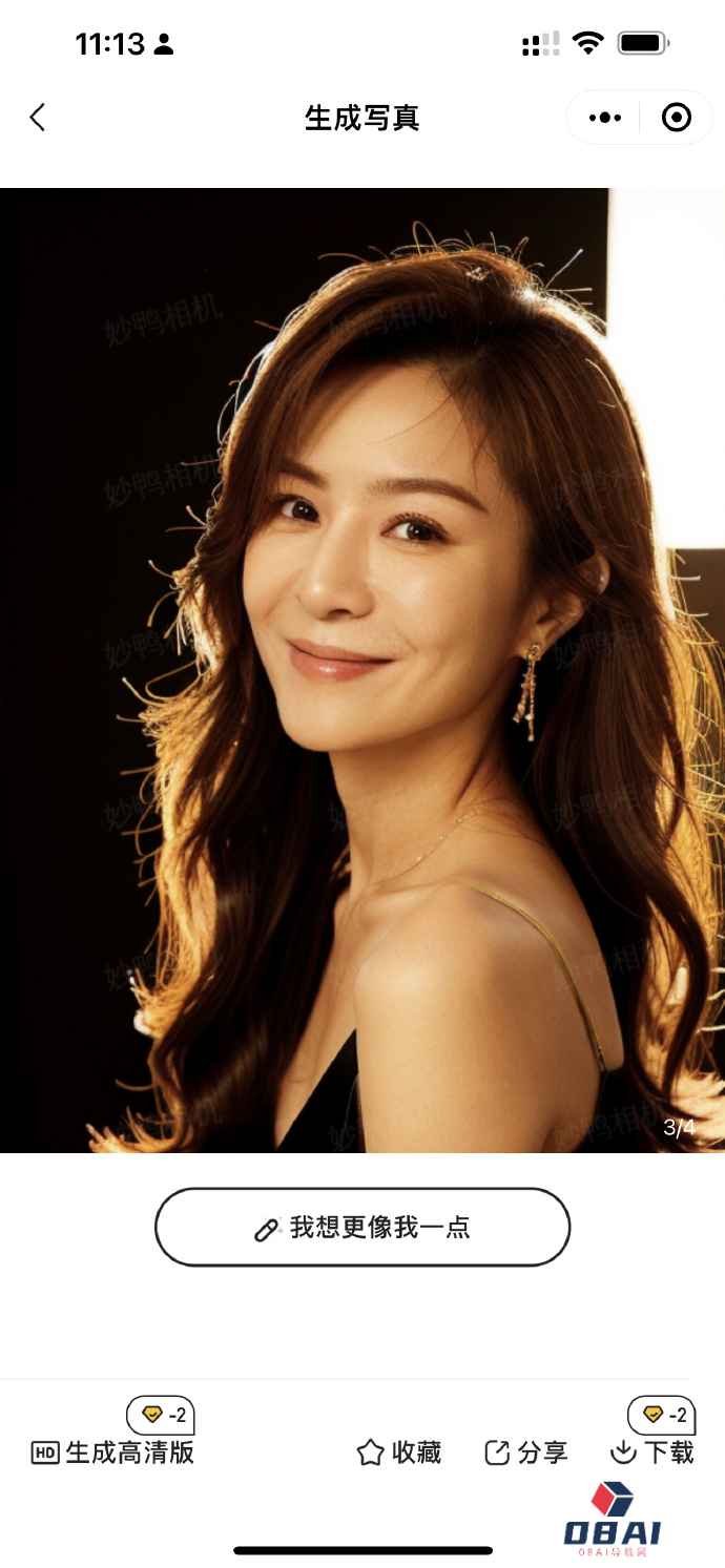 目前“妙鸭相机”已经推出了30多款**模板,背后的AI模型起名为。用户充值会员之后,可以实现照片的高清化,并且下载原图等功能。