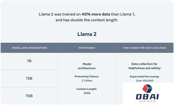 与今年 2 月发布的 Llama 1 相比,Llama 2 的训练数据多了 40%,上下文长度也翻倍,并采用了分组查询注意力机制。Llama 2 包含了 70 亿、130 亿和 700 亿参数的模型。对于 Llama 2的发布,Yann LeCun 在 Twitter 上称:这将改变大模型市场的格局。