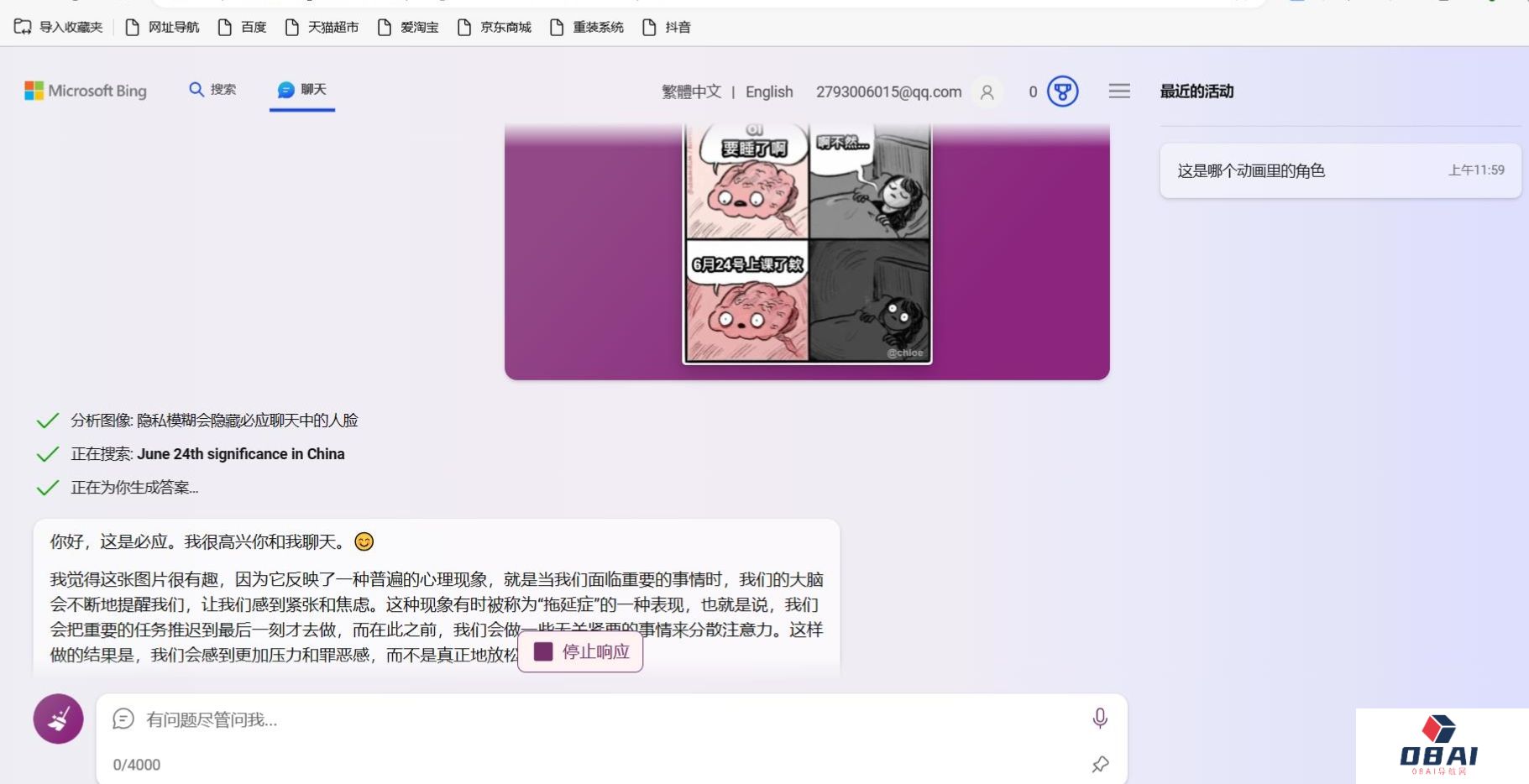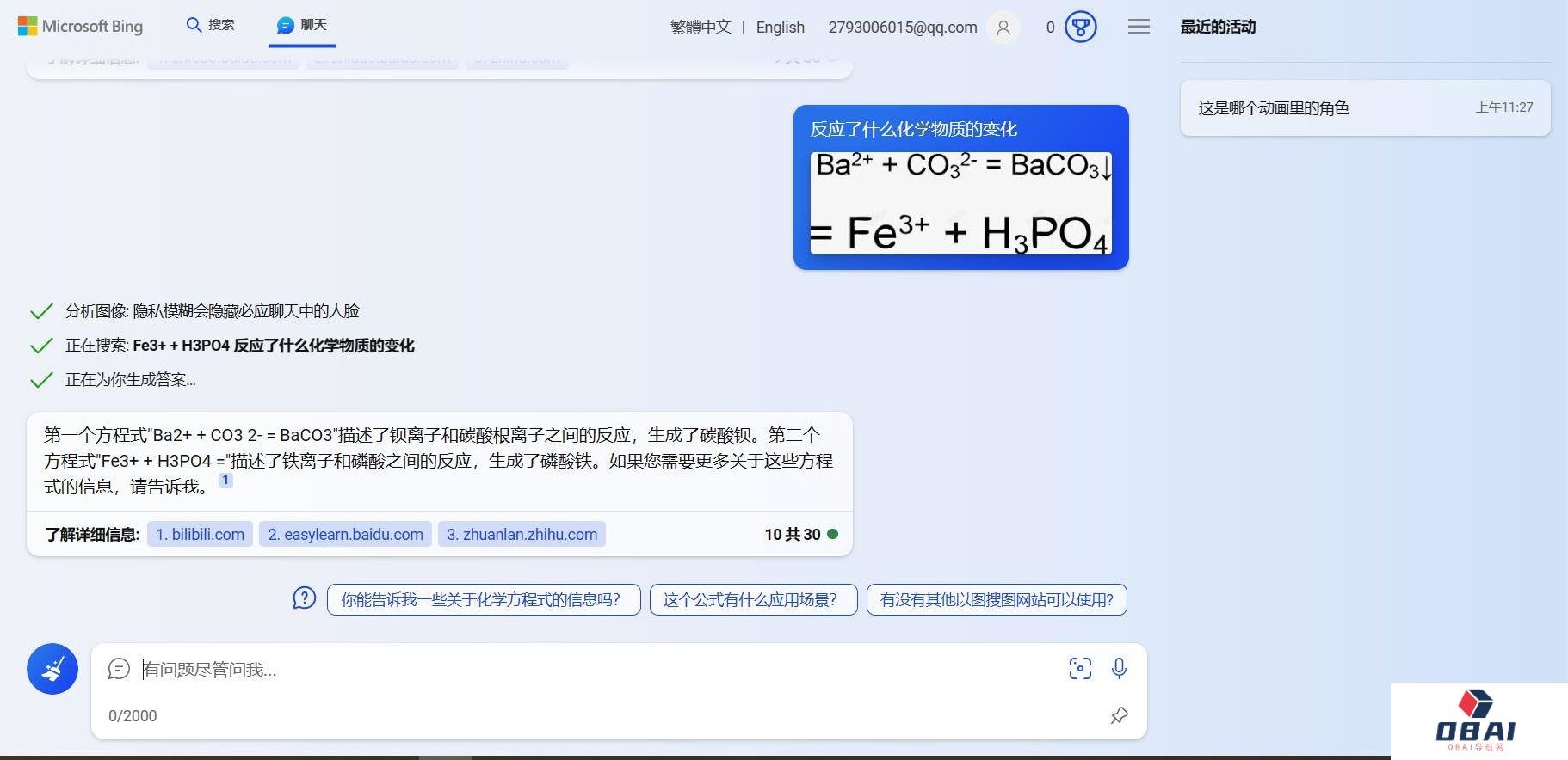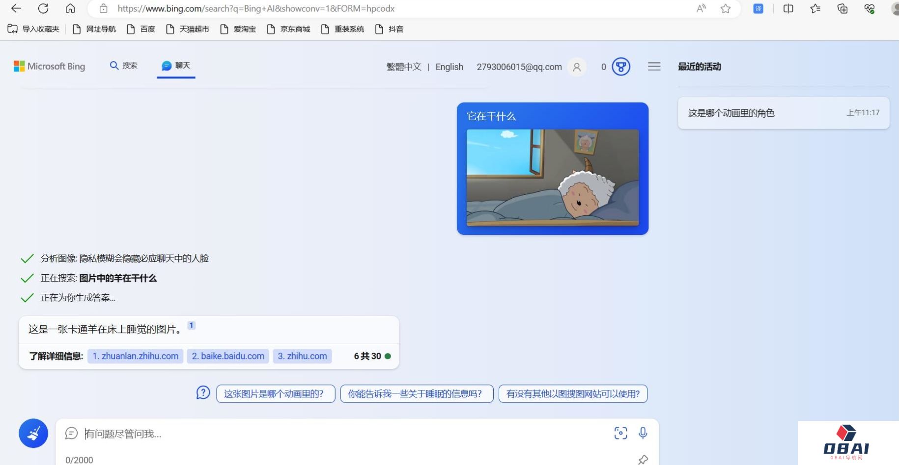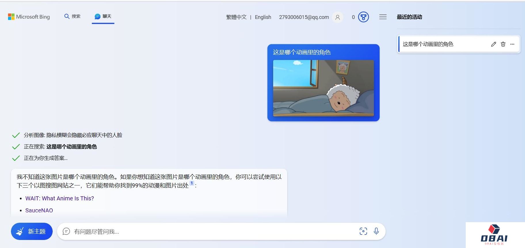 但对于辨别不论二次还是三次元的人物,bing Chat的识图功能表现得还不是那么智能,文字可以得到答案,但图片不可以,并不能识别出图片中的人物,AI奇点网期待它未来的进一步优化。