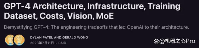 AI奇点网7月12日报道丨7月11日,OpenAI 旗下的 GPT-4 大量模型架构、训练成本、数据集等大量信息被泄露。SemiAnalysis 发布了一篇付费订阅的内容,揭秘了有关 GPT-4 的更多信息。文章称,他们从许多来源收集了大量有关 GPT-4 的信息,包括模型架构、训练基础设施、推理基础设施、参数量、训练数据集组成、token 量、层数、并行策略、多模态视觉适应、不同工程权衡背后的思维过程、独特的实现技术以及如何减轻与巨型模型推理有关的瓶颈等。