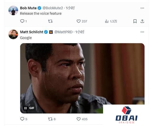 OpenAI官宣测试搜索功能后,社交媒体上,有网友配了一名男子流汗的动图,比喻谷歌现在要急得流汗了,这条成为超过2万高赞的热门评论。还有一条点赞过万的网友评论呼吁OpenAI,发布AI语音功能。