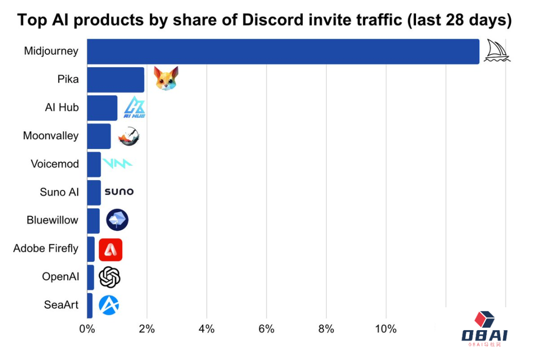 有人统计了Discord上最大的人工智能产品,以及它们在平台范围内的规模。