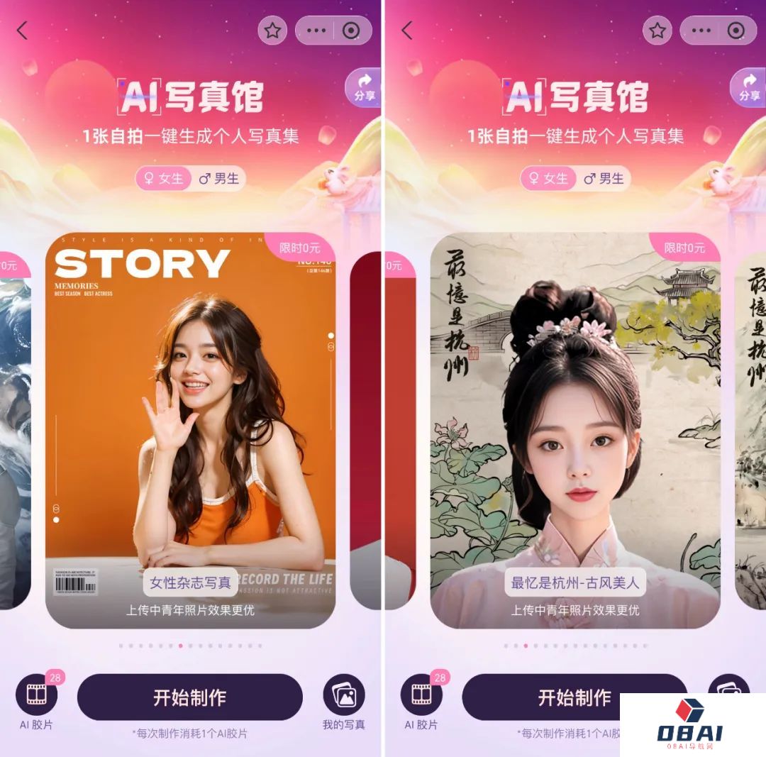 ??女生限时免费生成证件照、杂志封面照、古装照、职业照等等不同风格的7种AI**照。