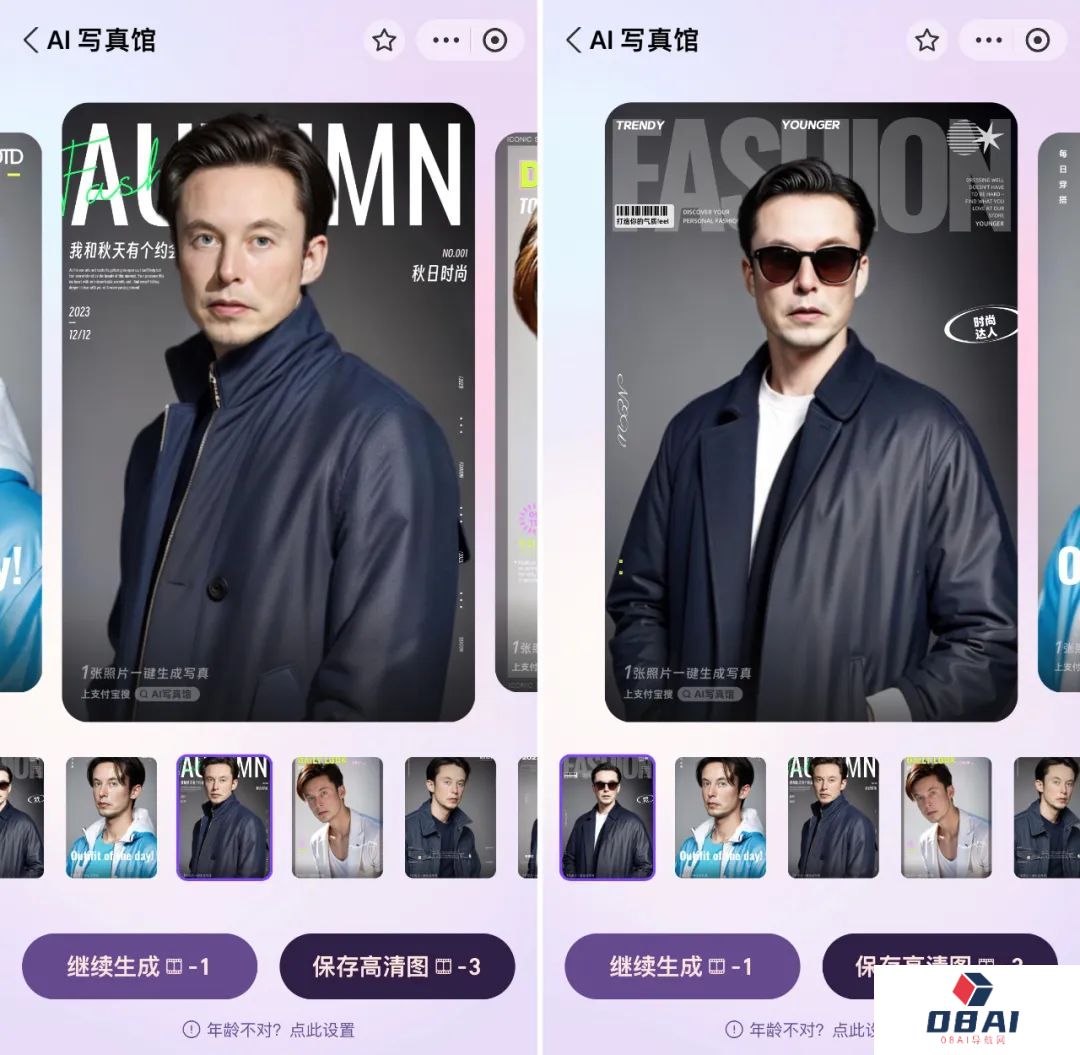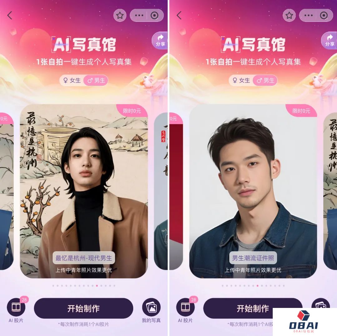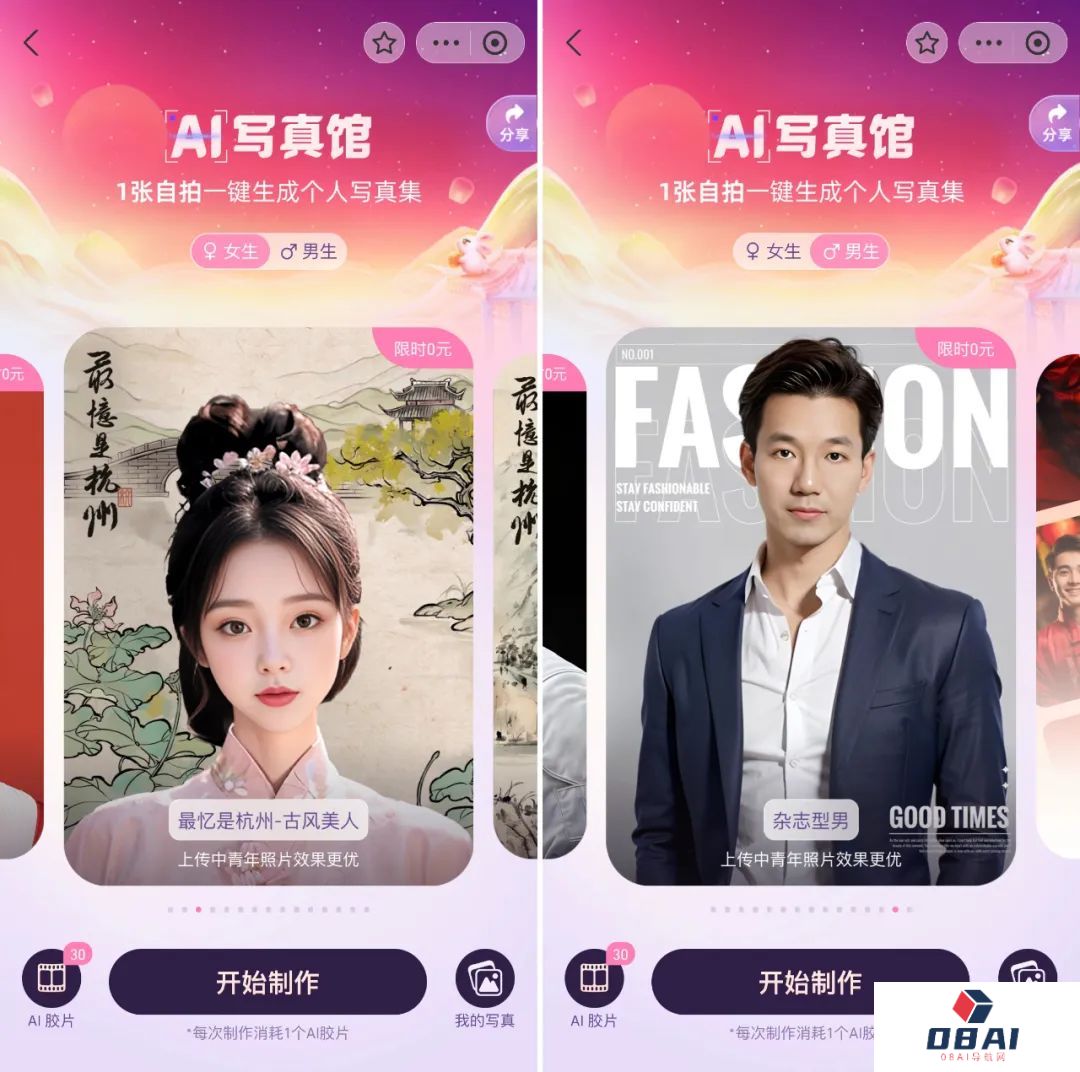 ??男生限时免费生成时尚**照、古装照、杂志封面照等等7种风格**照。