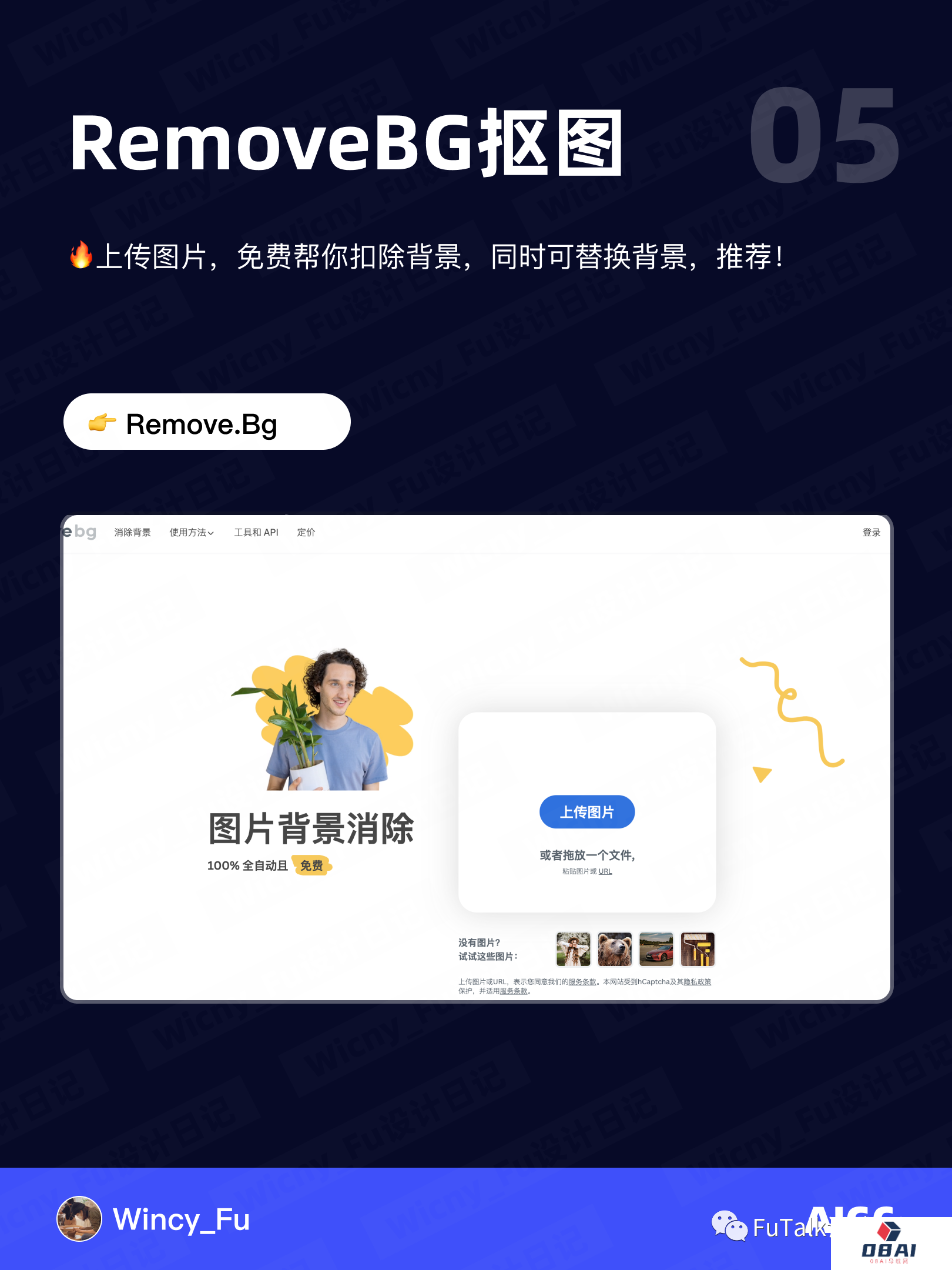 5、RemoveBG抠图:上传图片,免费帮你扣除背景,同时可替换背景,推荐!