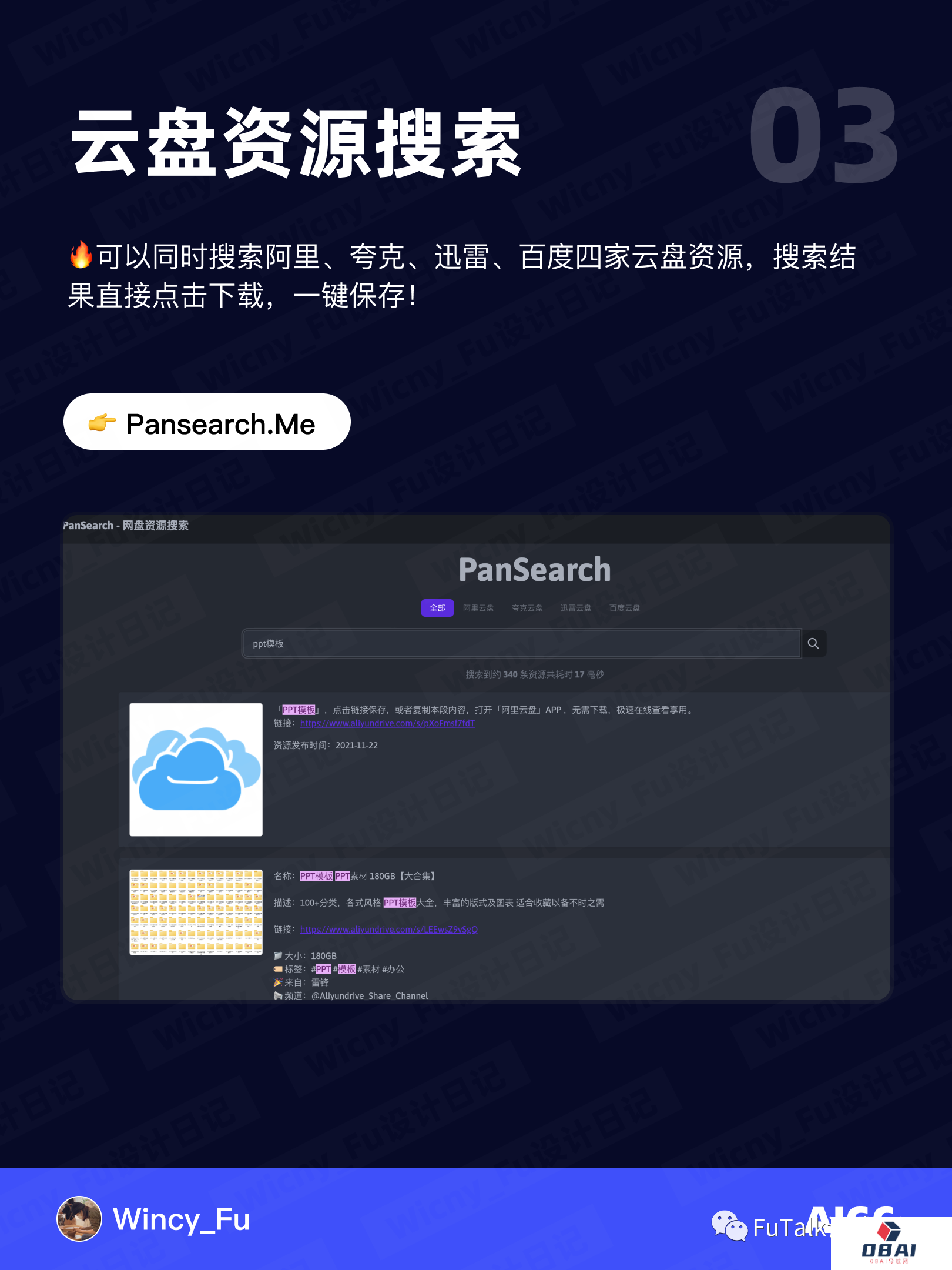 3、云盘资源搜索:可以同时搜索阿里、夸克、迅雷、百度四家云盘资源,搜索结果直接点击下载,一键保存!