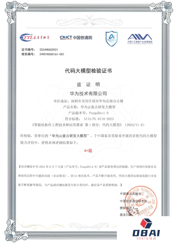 快科技6月12日消息,日前,华为云官方宣布,在中国信通院组织的首轮代码大模型评估中,华为云盘古研发大模型获得当前最高等级4+级,成为国内首批通过该项评估的企业之一。
