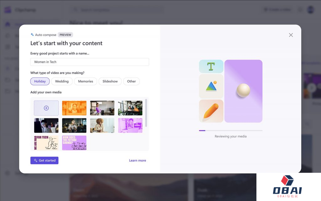 除此之外,视频剪辑也上新了Microsoft Clipchamp,只需要和AI说几句想做什么视频,它就能快速帮你推荐需要的场景。