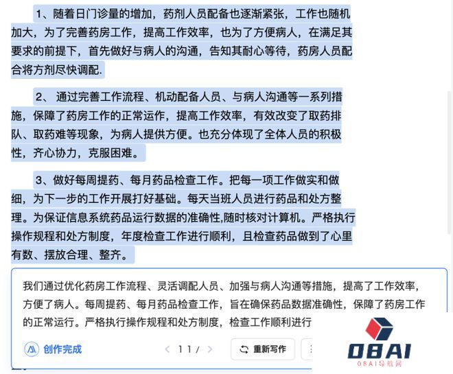 在撰写文章时,篇幅长短、文字风格等都会影响读者的阅读体验。当我上传了一份《药店经理年终工作计划与总结》的文档后,要求百度文库帮我将描述“药房进展工作”的内容缩减到100字以内。