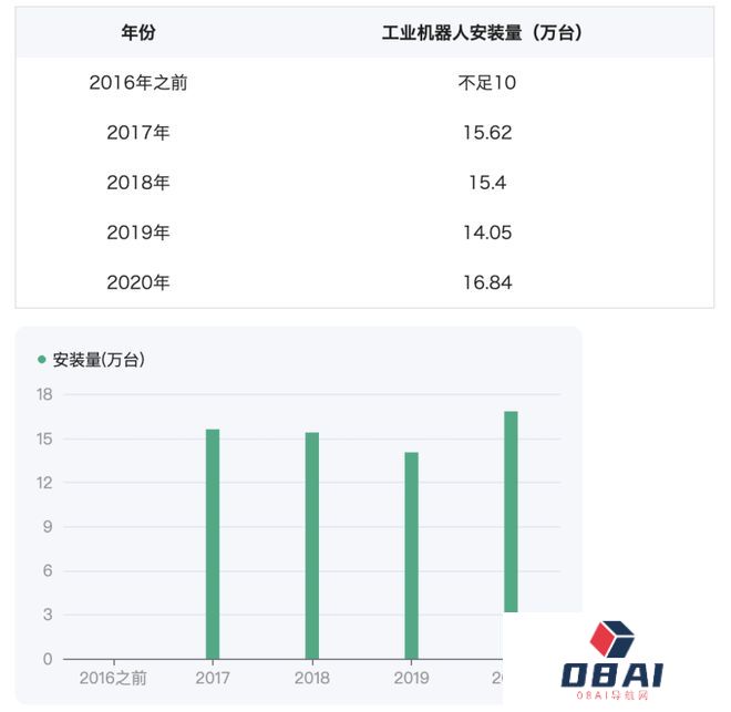 值得一提的是,这组数据中,“2017-2020年”的数据并列出现,2016年之前则采用了“2016年之前,工业机器人安装数量不足10万台”这样的表述形式,且时间维度是“之前”,百度文库在表格中都完整的呈现了相关信息。