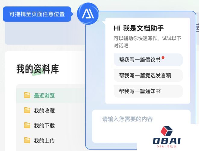 打开百度文库网页端,就可以跟AI进行对话,对话框还可以自动在页面的任何位置拖动,其不仅可以帮助我快速生成PPT,还能根据页面内百度文库中的文档进行提问。