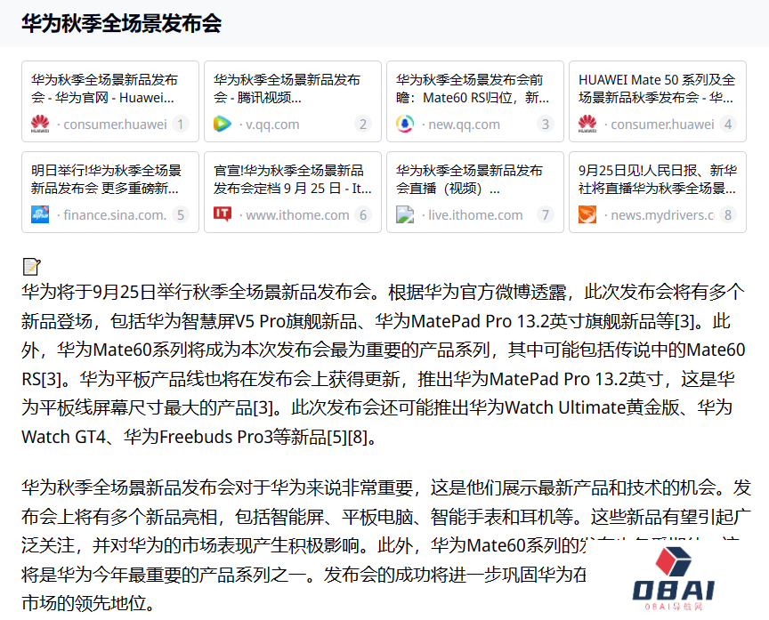 比如只需输入“华为秋季全场景发布会”,它能让你在海量信息中快速找到你需要的答案,同时标注内容的出处,方便用户辨别真伪。