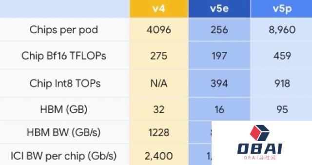 谷歌称,TPU v5p是其迄今为止最强大的,能够提供459 teraFLOPS(每秒可执行459万亿次浮点运算)的bfloat16(16位浮点数格式)性能或918 teraOPS(每秒可执行918万亿次整数运算)的Int8(执行8位整数)性能,支持95GB的高带宽内存,能够以2.76 TB/s的速度传输数据。